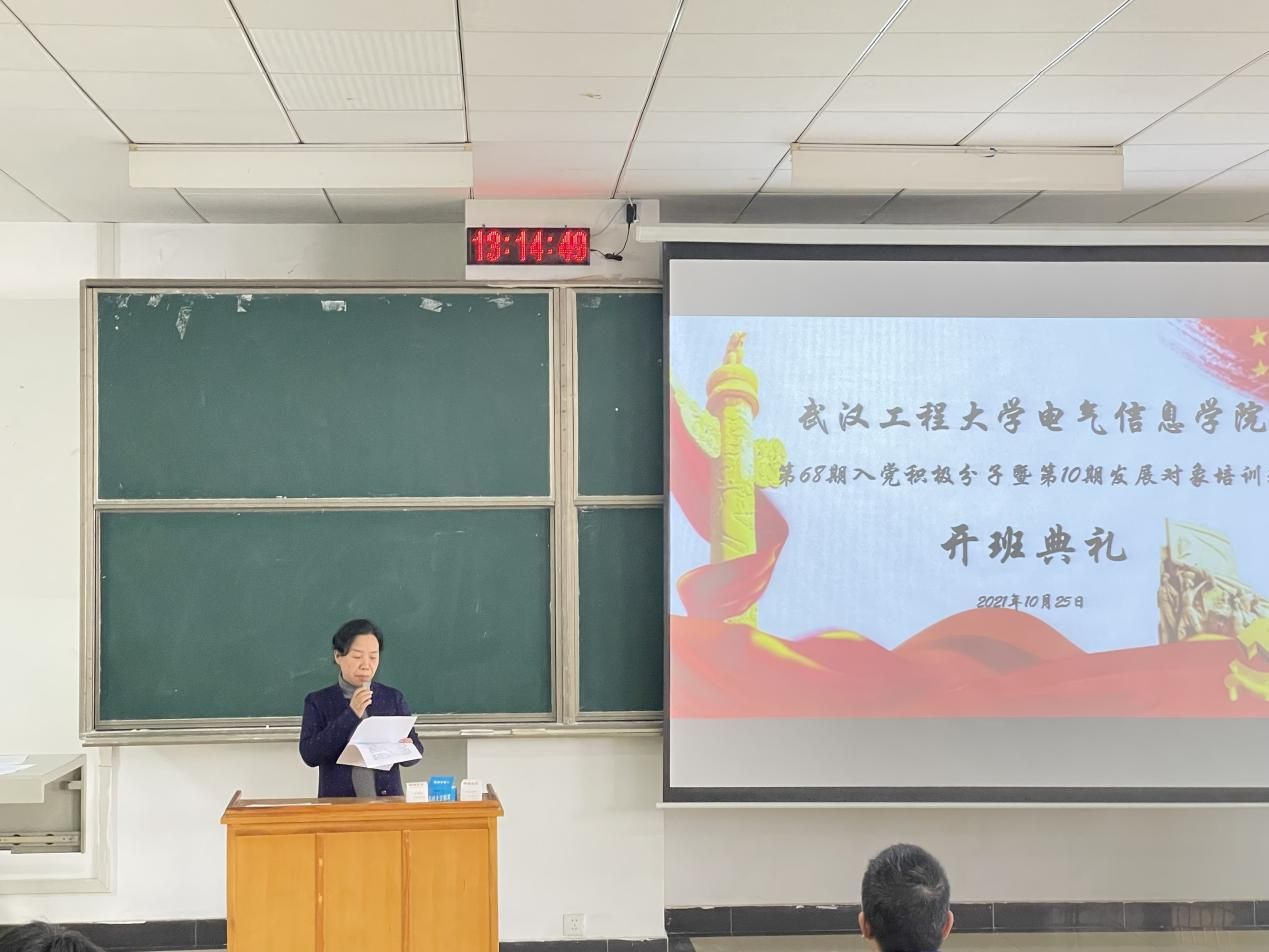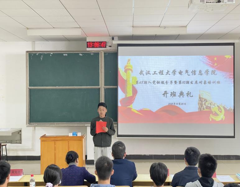 本网讯(通讯员 周雯琪)10月25日下午,买球的app排行榜前十名推荐在流芳校区3219教室举行第68期入党积极分子暨第10期发展对象培训班开班典礼。学院党委书记谢春晖、党委副书记李国保、学生党支部书记以及所有参训学员参加了本次会议。会议由本次分党校培训班班主任周雯琪主持。